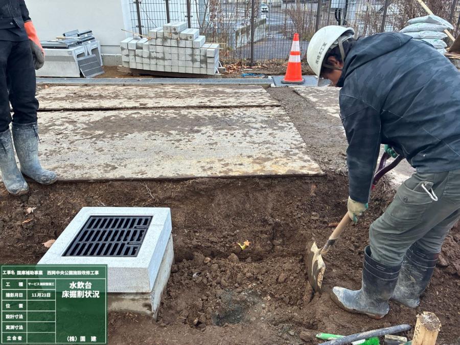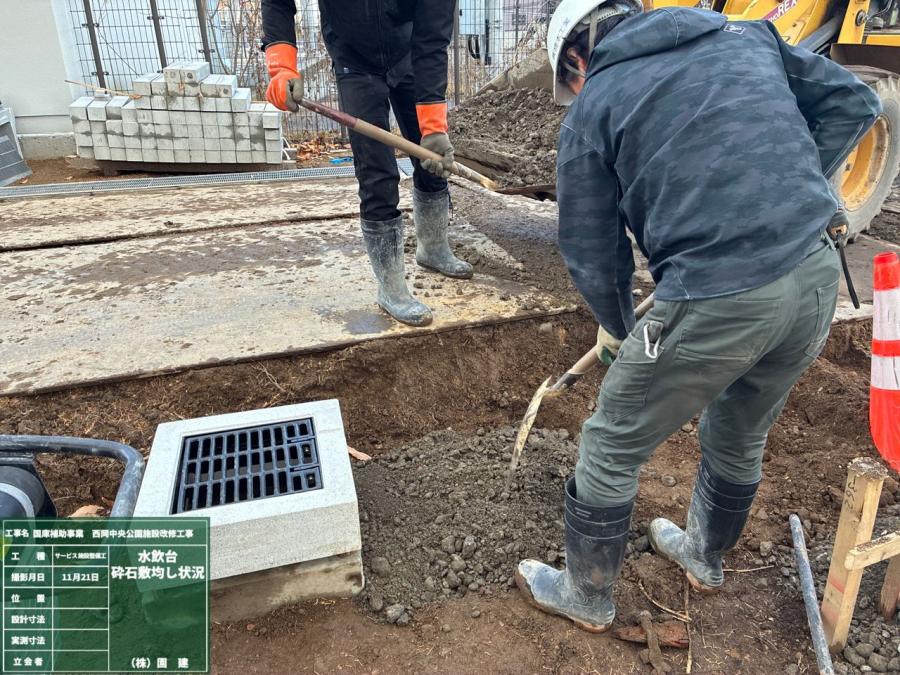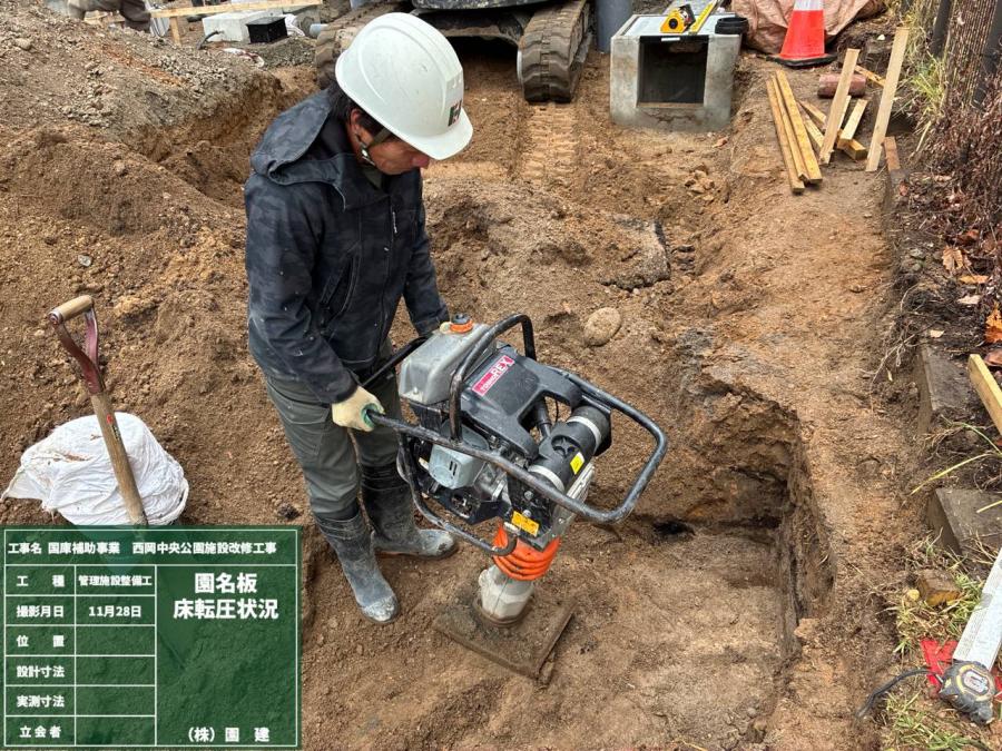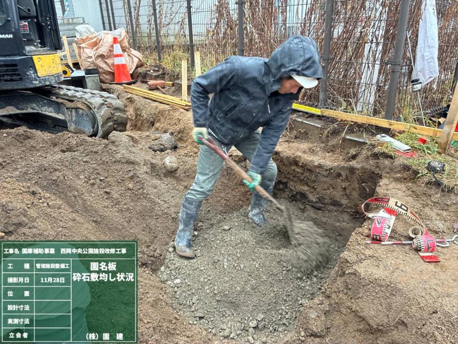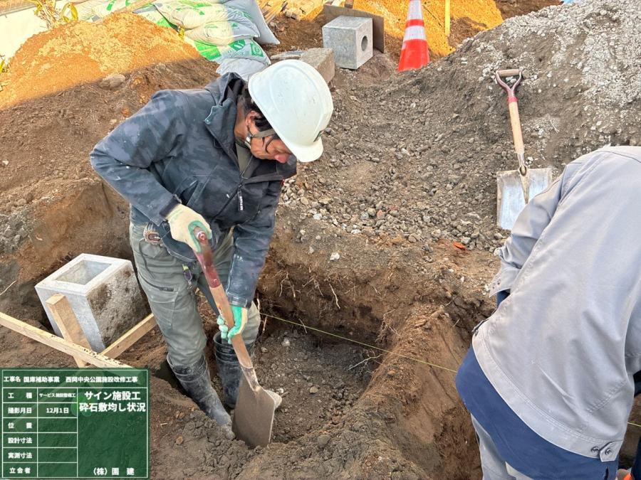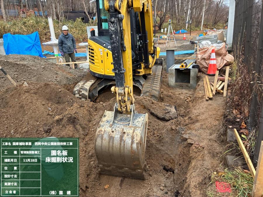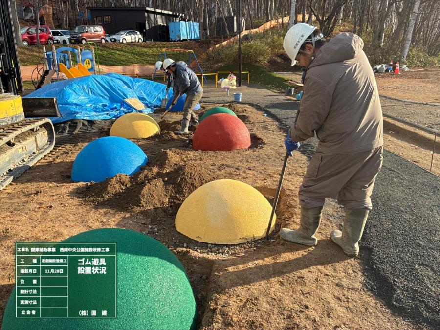 | 工事概要 | 敷地造成工、植栽基盤工、構造物撤去工、 公園施設等撤去・移設工、植栽工、 給水設備工、雨水排水設備工、 汚水排水設備工、電気施設整備工、 園路広場整備工、遊戯施設整備工、 サービス施設整備工、管理施設整備工、 建築施設組立設置工、附帯工、仮設工 |
