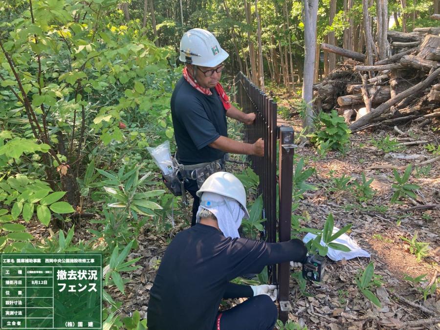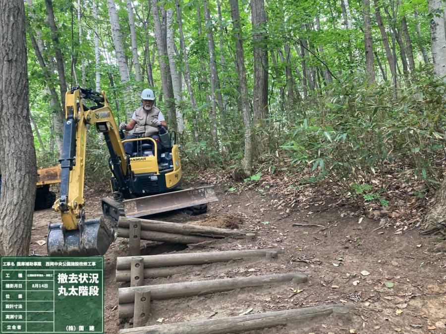 元々設置されていたフェンスや丸太階段等を撤去しました。