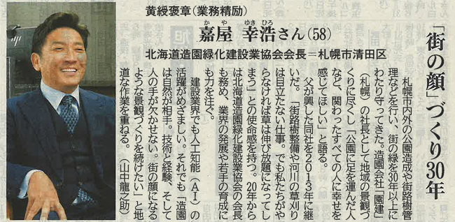 この受章に関する記事が、2025年11月2日付の北海道新聞および11月4日付の北海道建設新聞に掲載されました。